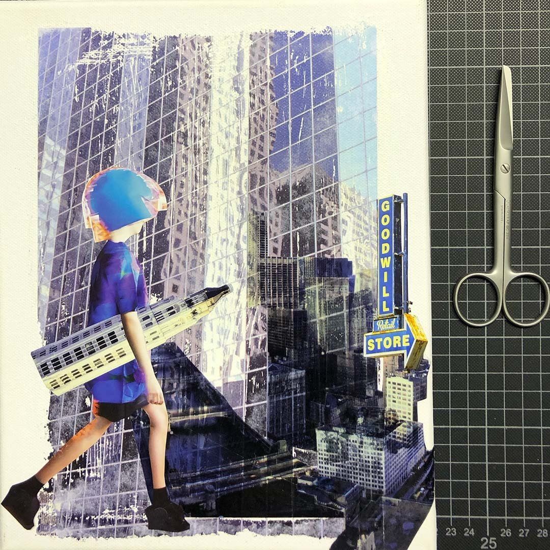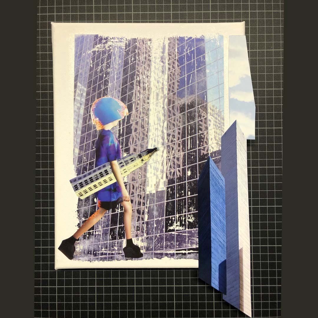 Collage | Mixed Media | Papier farbig, glänzend | Bildtransfer farbig auf Leinwand
