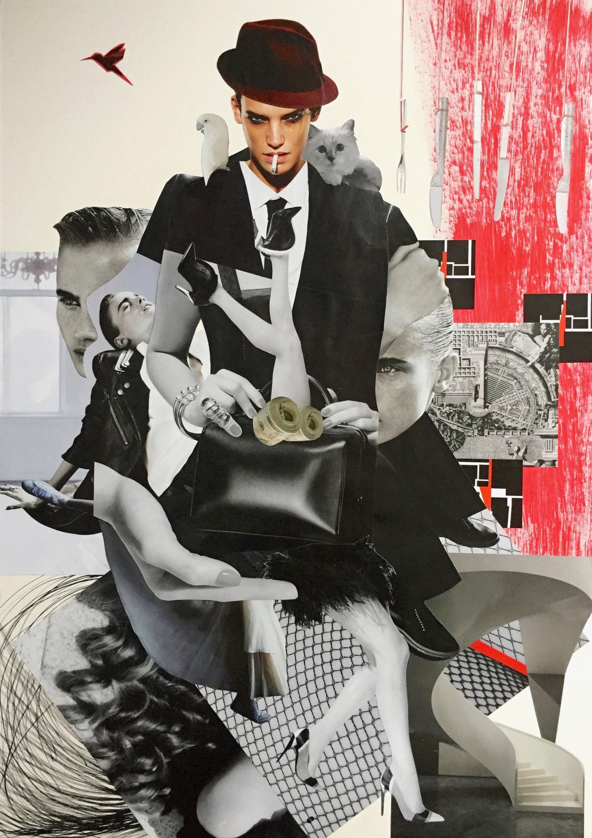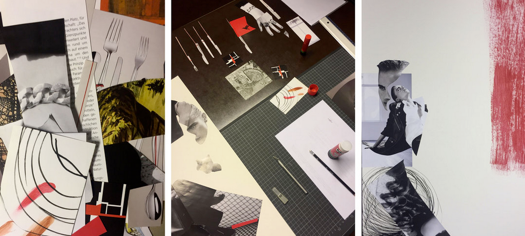 Collage | Mixed Media | Pappe | Papier farbig, schwarz-weiß