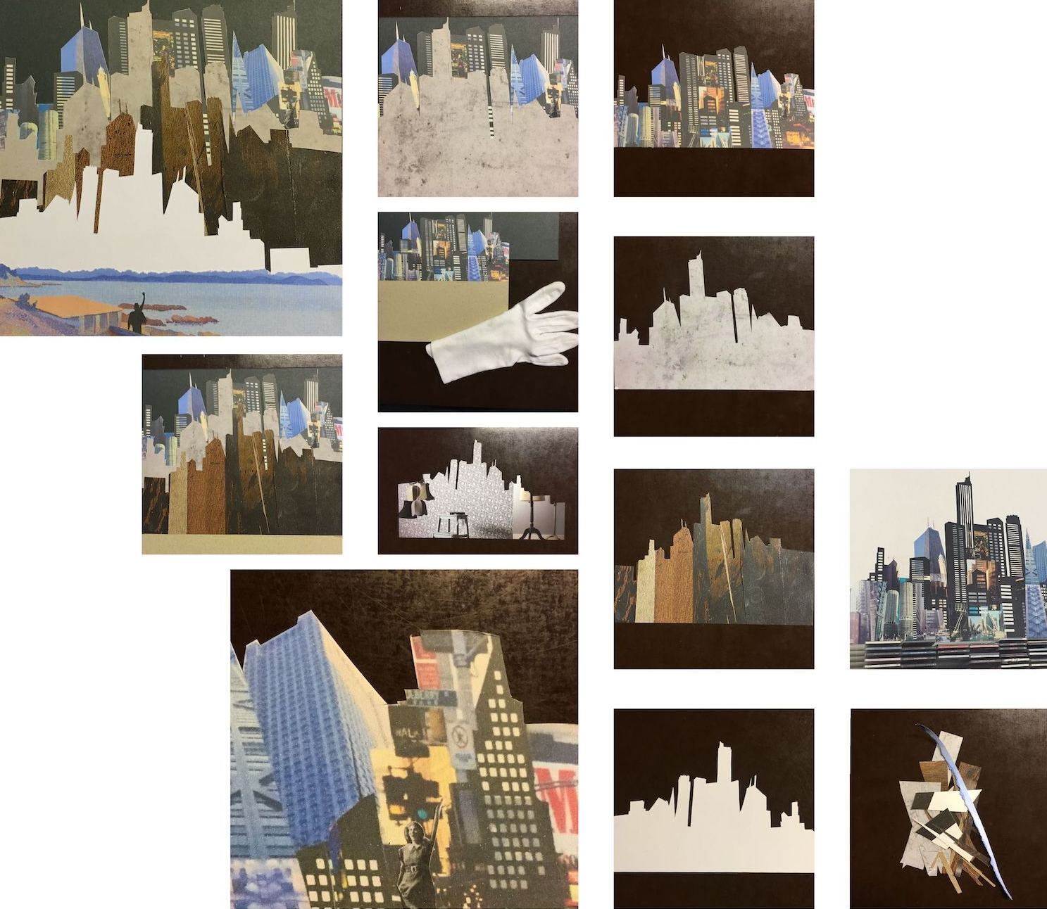 Collage | Grey cardboard | Solid black cardboard | Coloured paper, black and white, matt