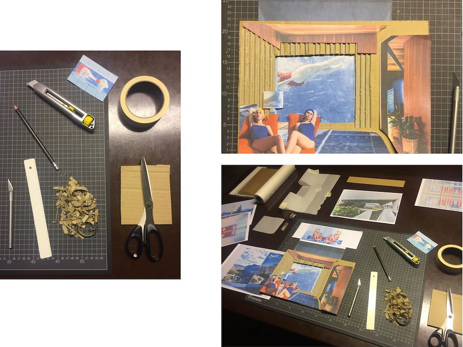 2D collages made from cardboard parts, max. format W 40.0 x H 40.0 cm