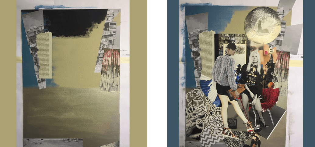 Collage | Mixed Media | Grey cardboard | Paper colored, matt, glossy