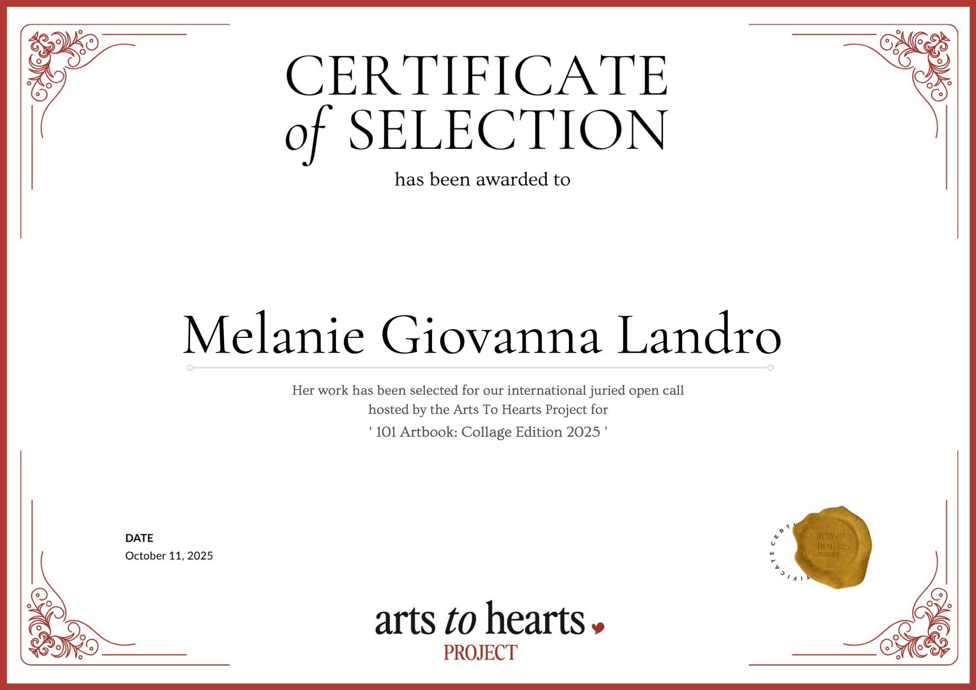 Die Aussage vermittelt die Ideen der Künstlerin klar und steht in gutem Zusammenhang mit den eingereichten Werken, wodurch das Verständnis des Betrachters für die Praxis verbessert wird. Konsistenz und Kohäsion: 4,5/5. Das Portfolio zeigt eine Kohärenz zwischen den eingereichten Werken, wobei jedes einzelne Stück zu einer einheitlichen Vision beiträgt. Variationen in Stil oder Medium verleihen Tiefe, ohne die Gesamtgeschichte zu stören. Wirkung und Engagement: 5/5.